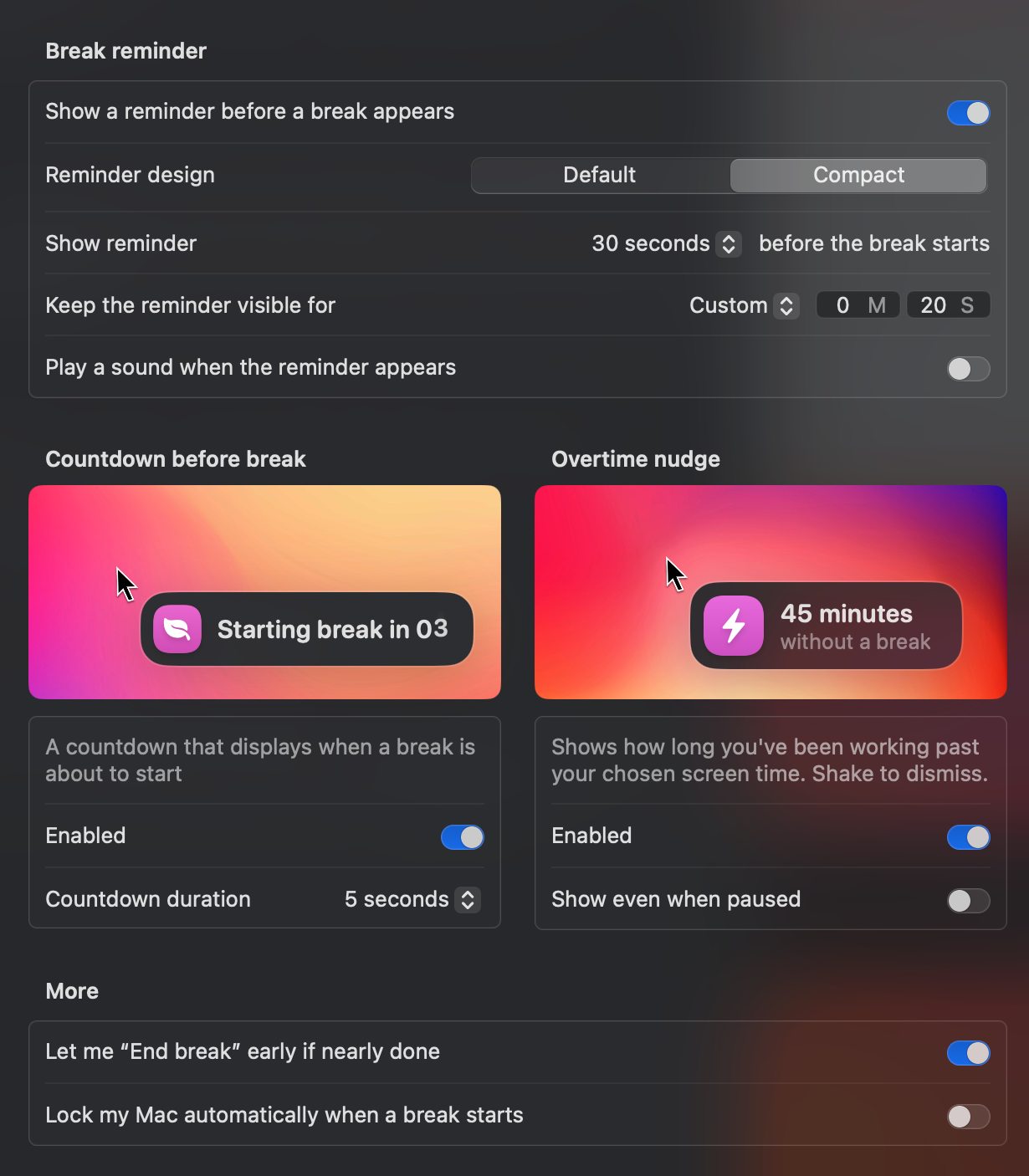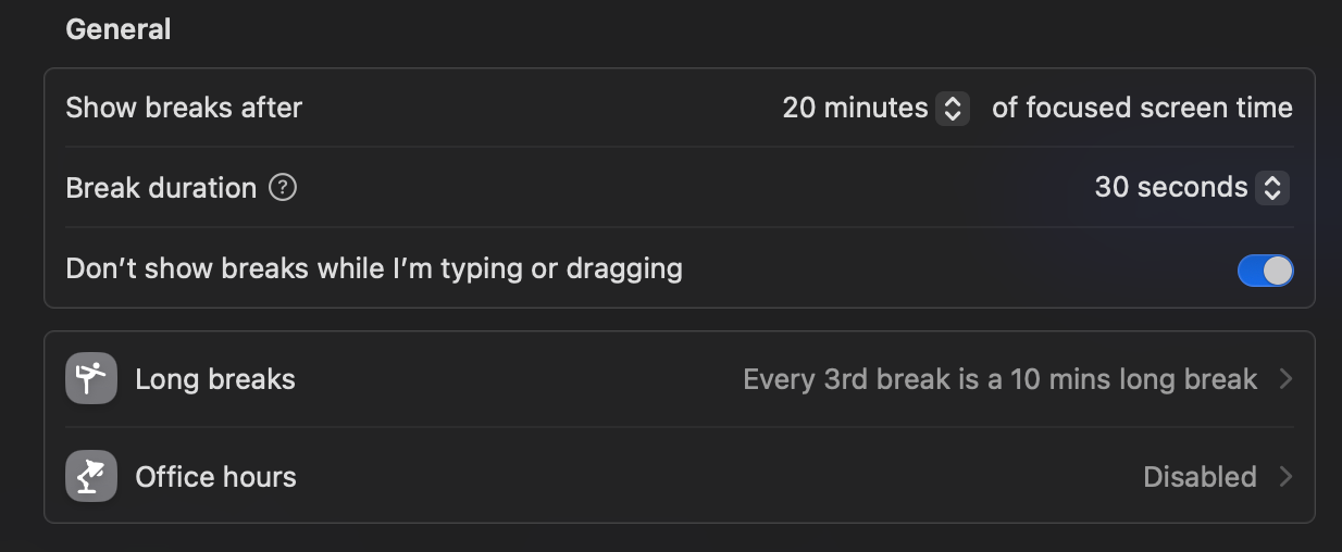 If set two every 2 breaks it seems to work. No idea of the count is reset when taking a natural break or if a planned short break lasts longer.